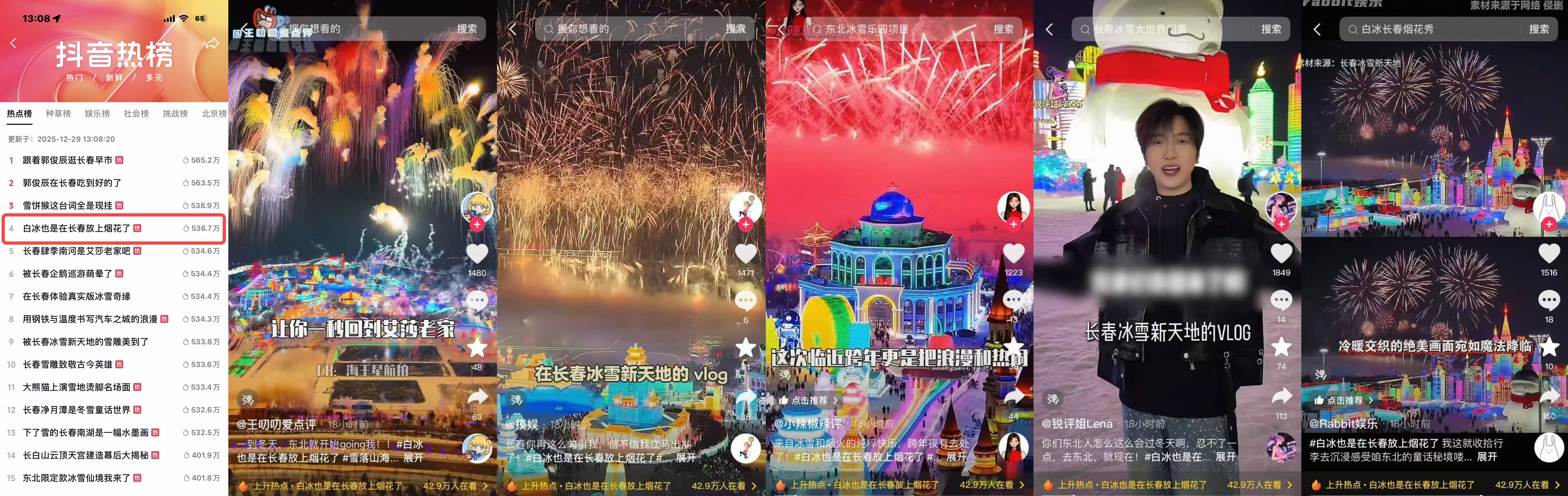 如果说雪山跨年是与星空对话的宁静浪漫,那么在长春冰雪新天地,一场由抖音生活服务与达人@MR-白冰共同邀约的盛大烟花秀,则准备了一份火热喧腾的“东北式”快乐。12月27日,当烟花在夜空中轰鸣绽放,照亮奇幻的冰雕城堡和每一张仰望的笑脸,那份跨越屏幕的心意,便在现场化作了真实可触的感动与欢呼。#白冰也是在长春放上烟花了 登上同城榜TOP4,成功为当地乐园等消费场景的转化注入新的活力,让冬日节日消费市场迅速升温。
