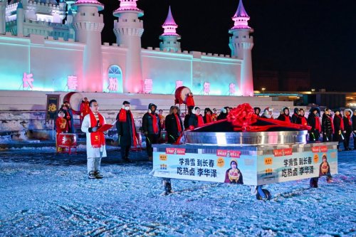 “天地玄黄,日月昭彰。冰雪福地,英贤毕至,续中华饮食文化精粹,燃千年热卤滚烫炉火。旧岁将尽,新程待启。”凛冽寒风中,字字铿锵的敬告词穿透人群,既彰显了对中华饮食文化的敬畏,也寄托了李华泽热卤品牌开启新程的美好期许。