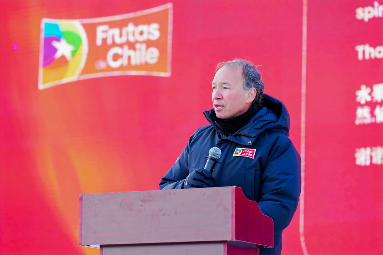 智利驻华大使巴勃罗·阿里亚兰(Pablo Arriarán Ahumada)、中国食品土畜进出口商会副会长于露、智利水果出口商协会主席伊万·马凡比奥(Iván Marambio)、智利车厘子委员会执行总监克劳迪娅·索勒(Claudia Soler)等嘉宾出席开幕式并致辞。