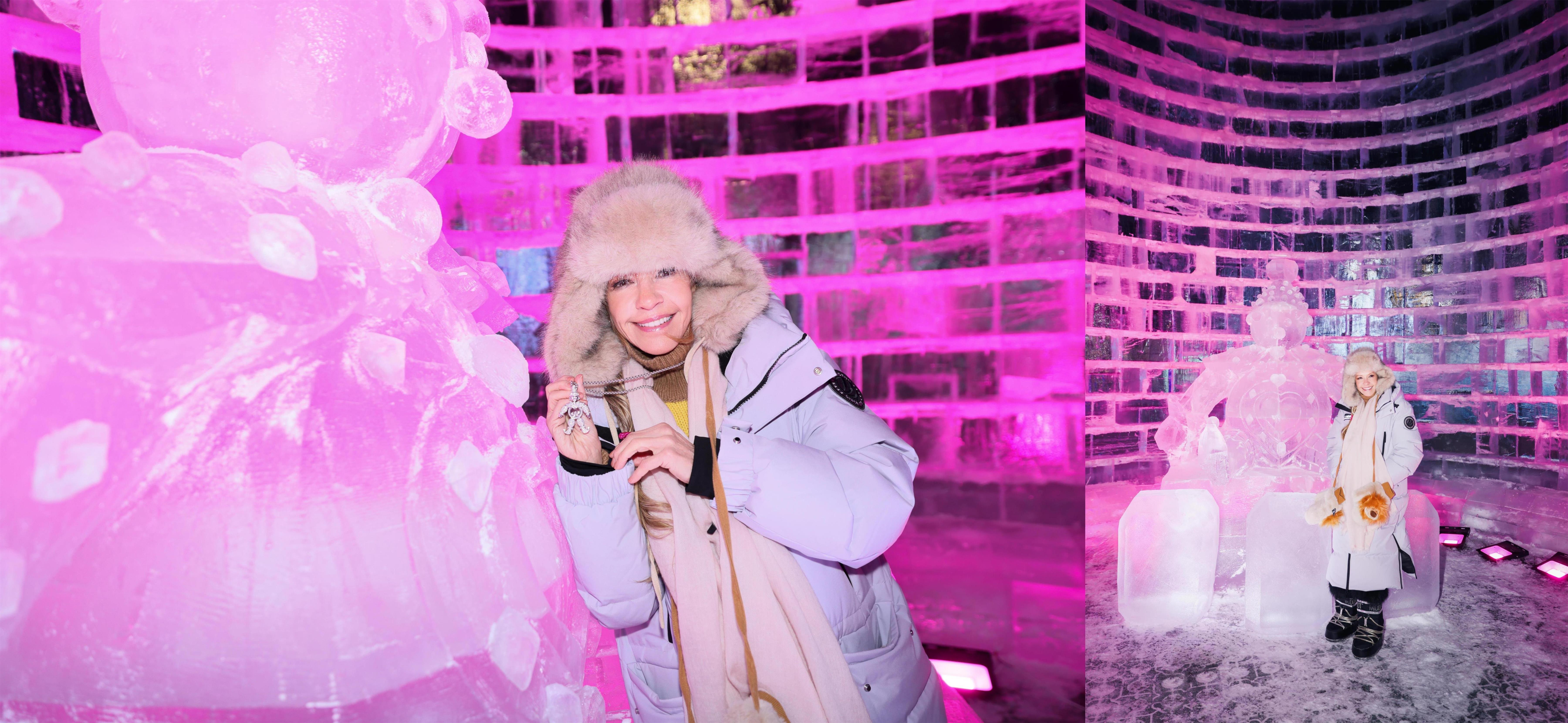 Chopard萧邦联合总裁兼艺术总监卡罗琳·舍费尔(Caroline Scheufele)与“冰雪大世界”冰雕艺术装置