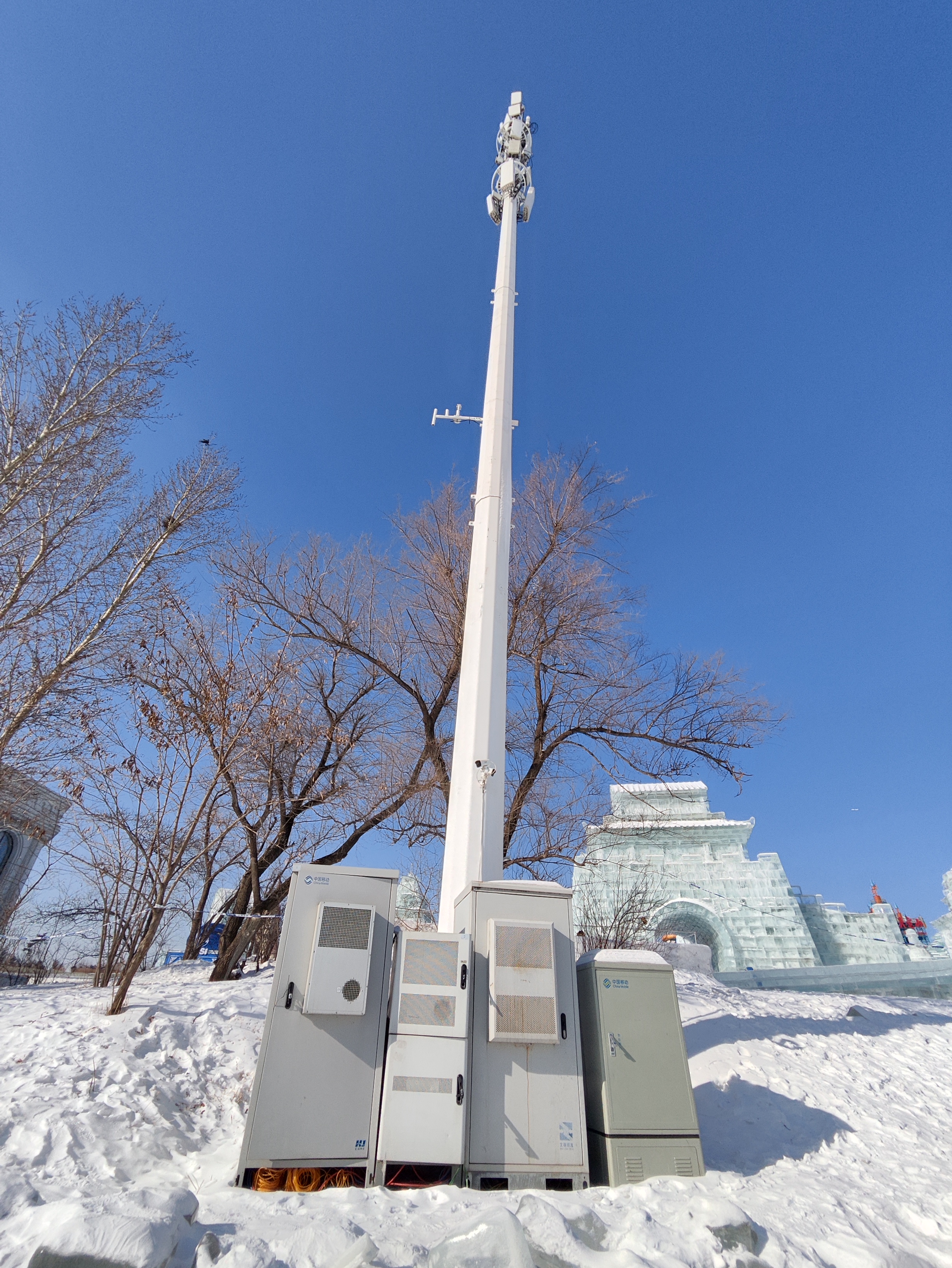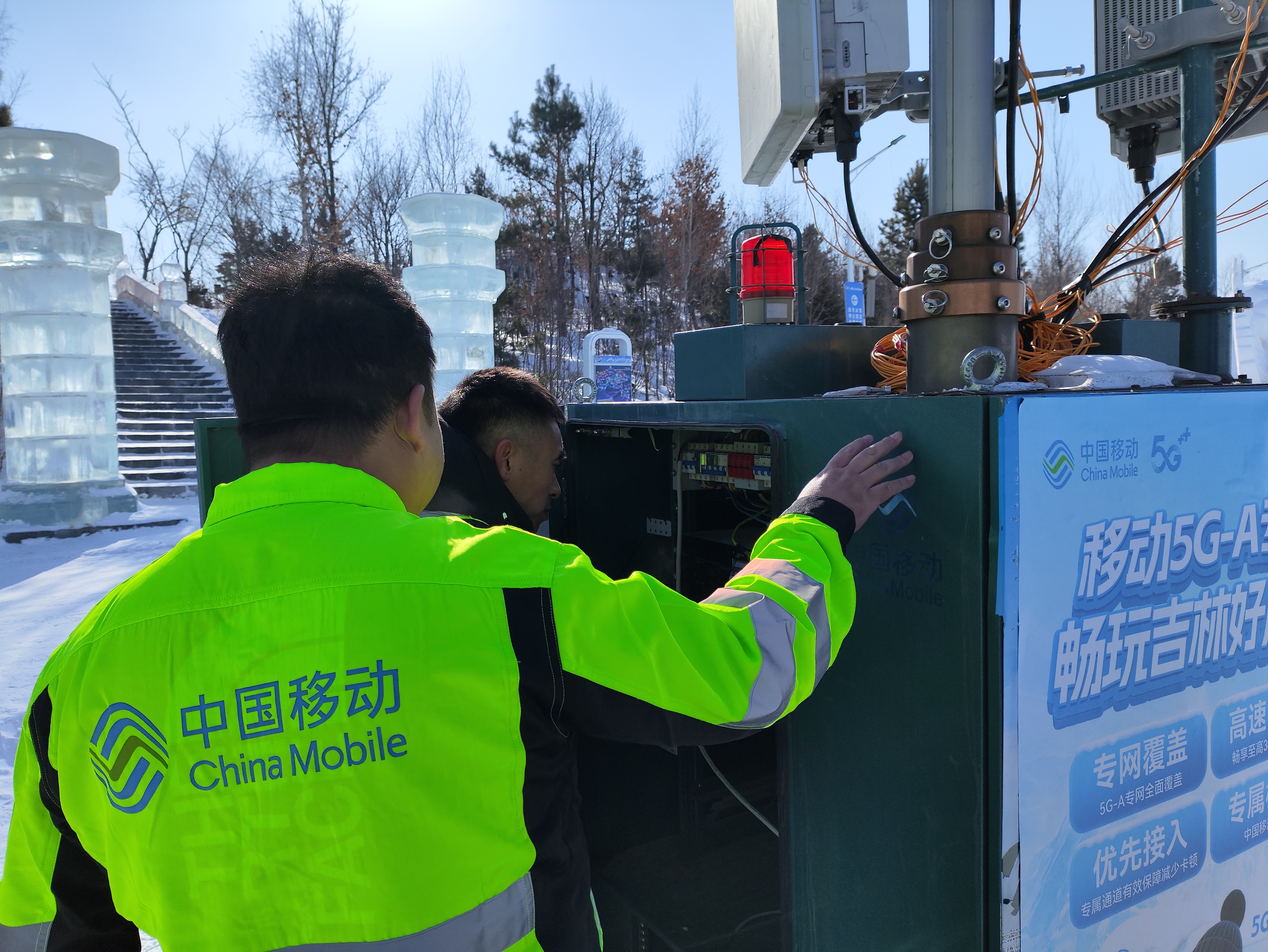 这个冰雪季,长春冰雪新天地迎来客流高峰,跨年、冰雪节开幕期间日均人流量突破8万人次。为了让游客在冰天雪地中享受高速稳定的网络服务,吉林移动启动“冰雪旅游网络护航行动”,将冰雪新天地作为核心保障场景重点布局。团队克服低温冻土等多重施工难题,在园区周边及内部建成25座5G-A基站,其中宏站13座、微站12座,实现从地铁口、停车场到园区内的全域无缝覆盖,为这场冰雪盛宴筑牢通信“生命线”。