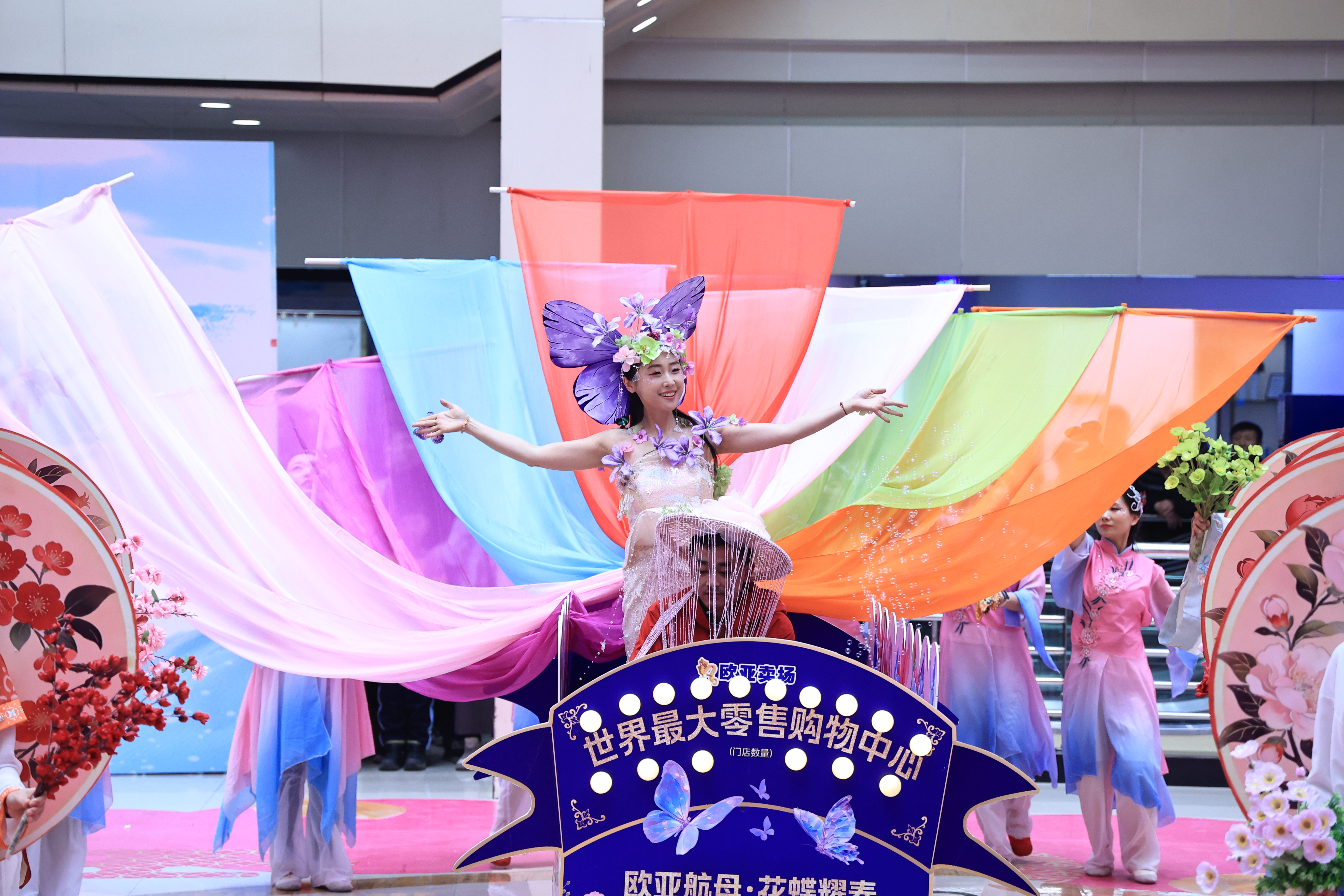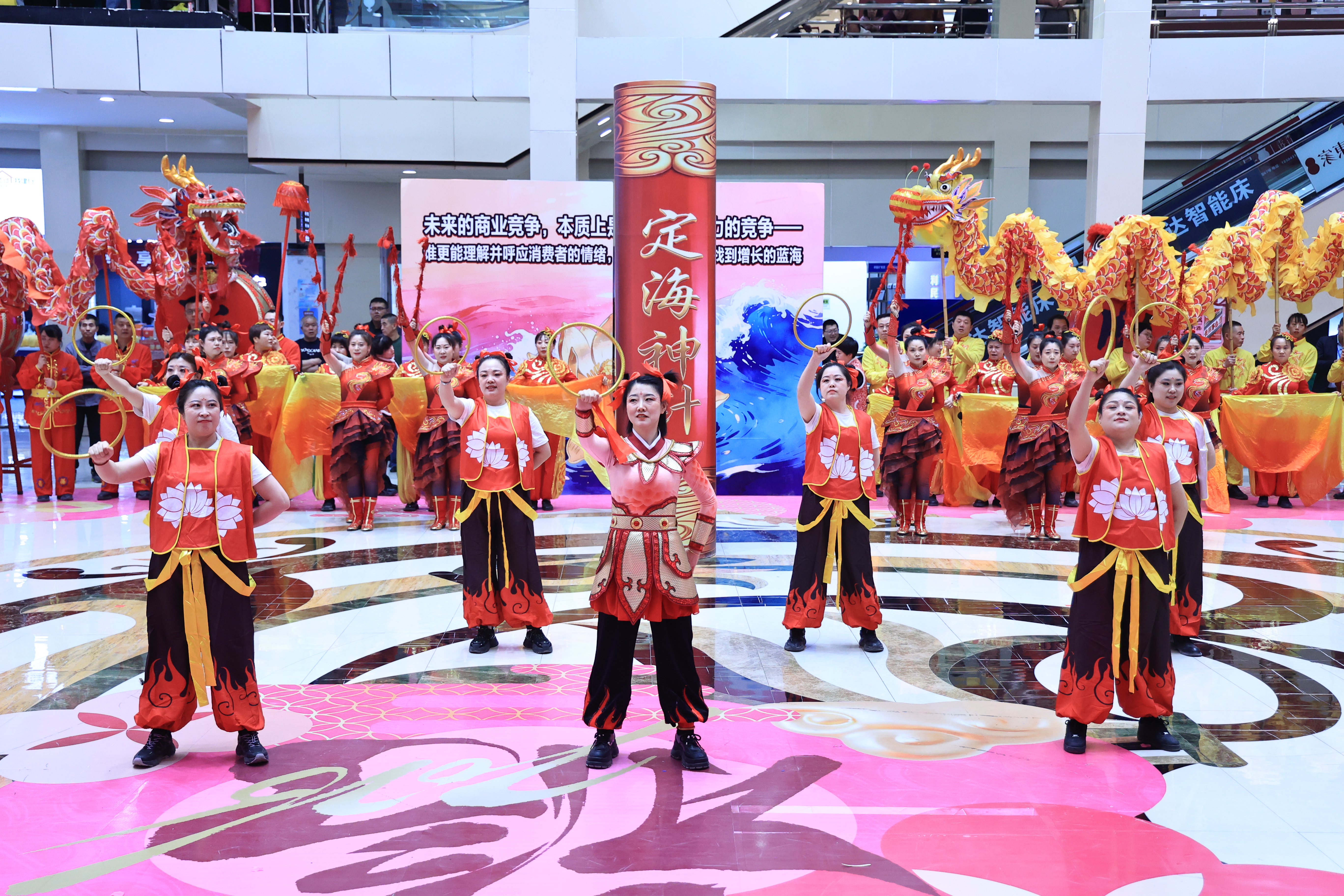 随后,在铿锵的锣鼓声中,来自11个商场的参赛队伍依次亮相,各展风采。男装商场以《风从卖场来 青春向未来》尽展青年朝气;黄金珠宝城《春临卖场开万象 马蹄踏韵醉山河》融传统秧歌与现代曲艺;精品服饰商场《欧亚航母 花蝶耀春》以唯美舞姿致敬企业26年发展历程;体服户外商场180人阵容带来《大唐盛世众仙贺 瑞马奔腾福九州》,气势恢弘、场面壮阔,将现场气氛推向最高潮……红绸翻飞、彩扇腾跃,卖场员工队伍以昂扬姿态舞出节日喜庆,更展现出企业向上向善、服务民生的精神风貌。