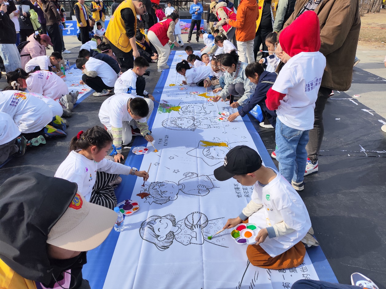 春日暖阳下,一场不设名次、不拼胜负的亲子乐跑温情开跑。“重在参与、感受快乐”的理念,让孩子们卸下压力,享受纯粹的亲子时光。冲线时刻,每位小勇士都收获了专属荣誉奖牌,笑容灿烂如阳。乐跑后,孩子们来到涂鸦区,拿起画笔在百米长卷上一起勾勒出心中的美好世界,每一笔都是童真表达,每一划都是爱的印迹。当长卷徐徐展开,斑斓色彩汇成一片爱的海洋。